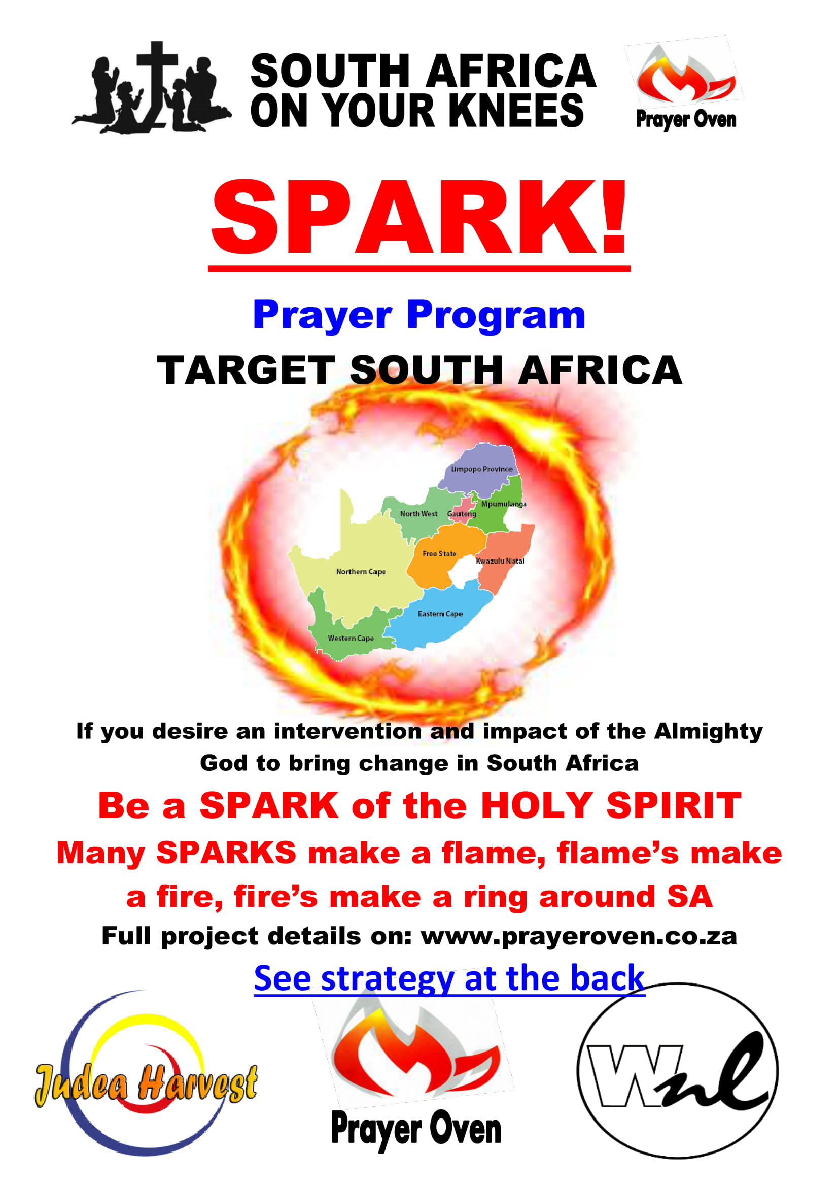 To set the SPARK of the Holy Spirit in us alight for a mighty Holy Spirit move and revival in our own lives, homes, churches, towns, cities and country – South Africa. All the sparks together in unity for Jesus will make a flame, and all the flames a fire, and all the fires an explosion in the Spirit.
