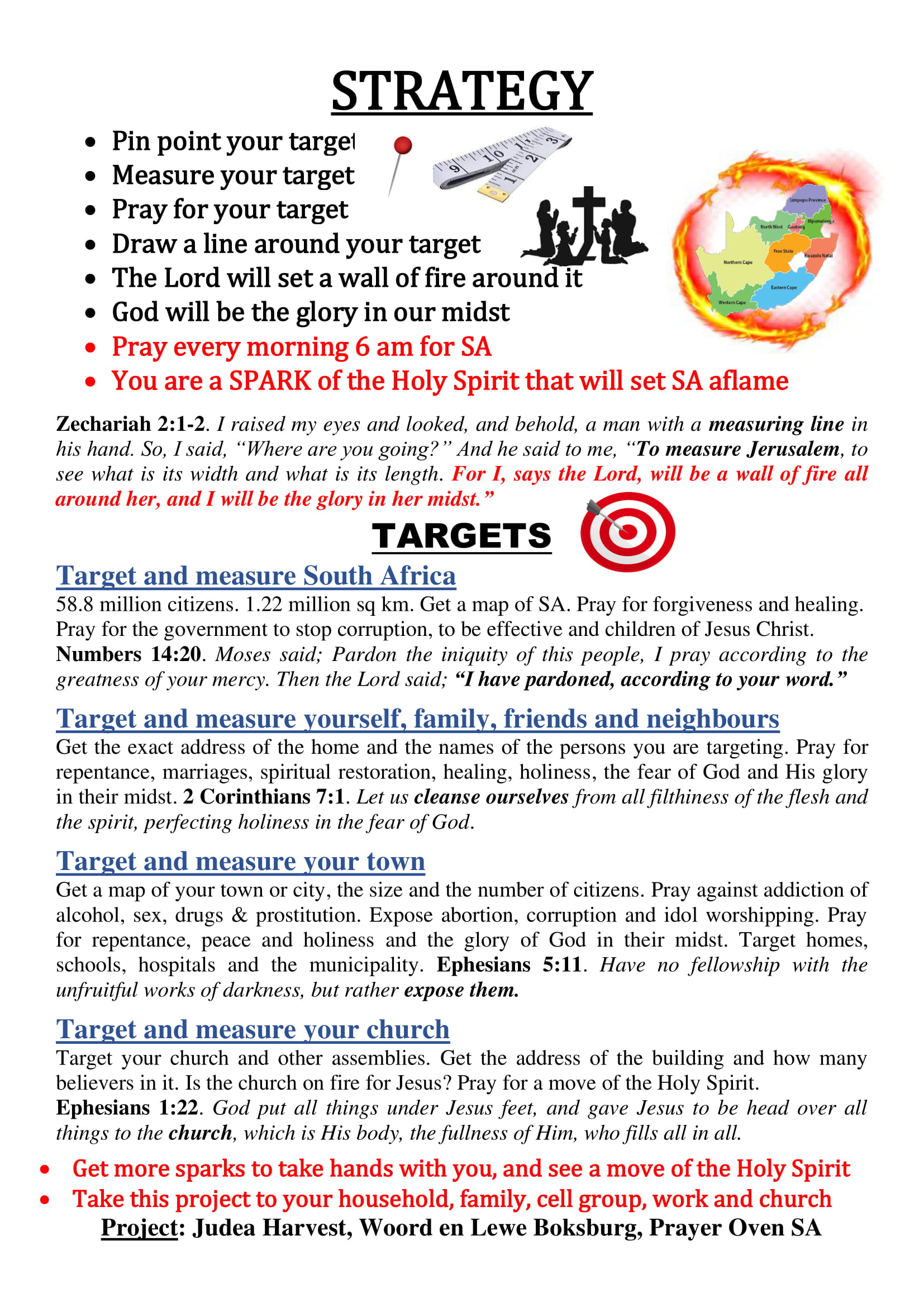 Pray at 6 am every morning or once a day this year, starting with your main target South Africa, and then move on to your other targets.